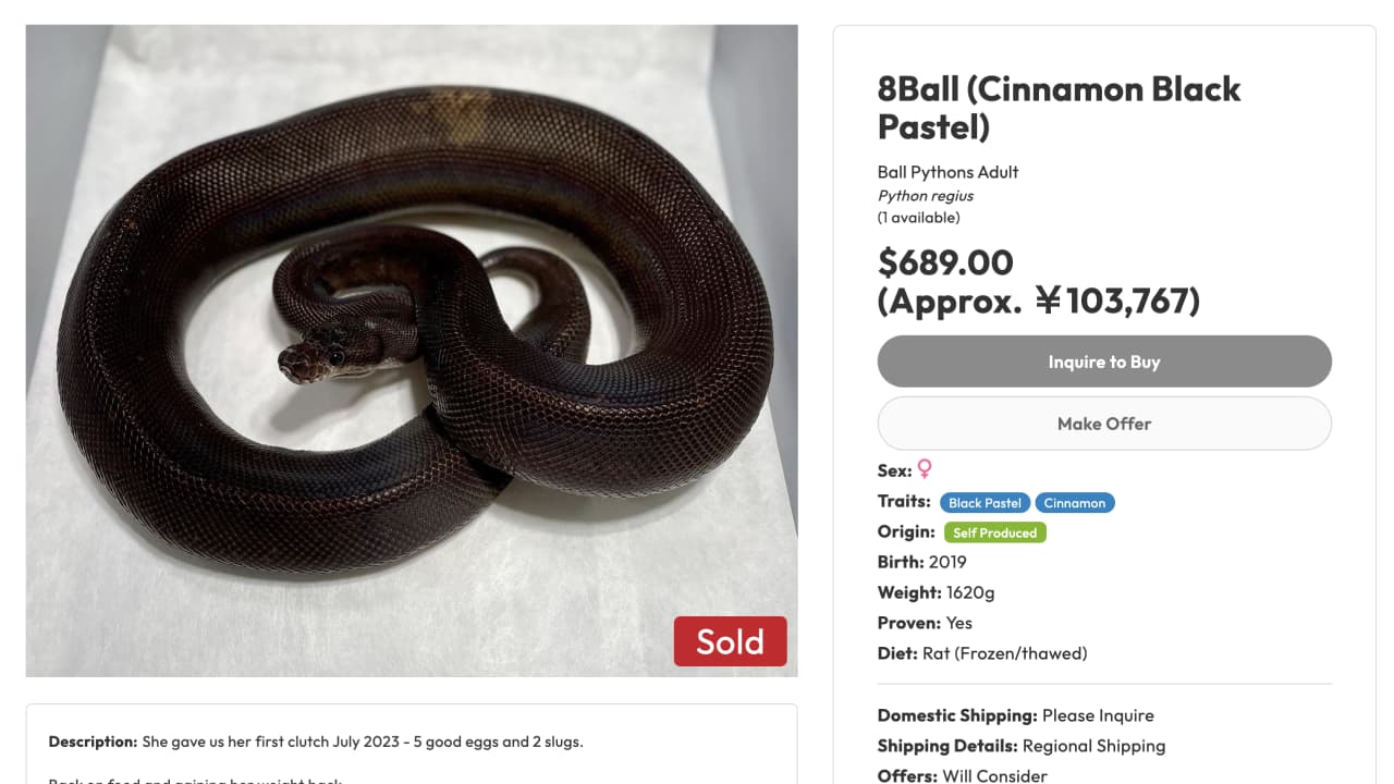 対立遺伝子を利用したコンボモルフ(例:ブラックパステル × シナモン = 8ボール)では、スーパー体特有の健康リスクを回避しつつ、スーパー体に似た美しい個体を作出できます。これにより、動物福祉を優先した責任あるブリーディングが可能になります。